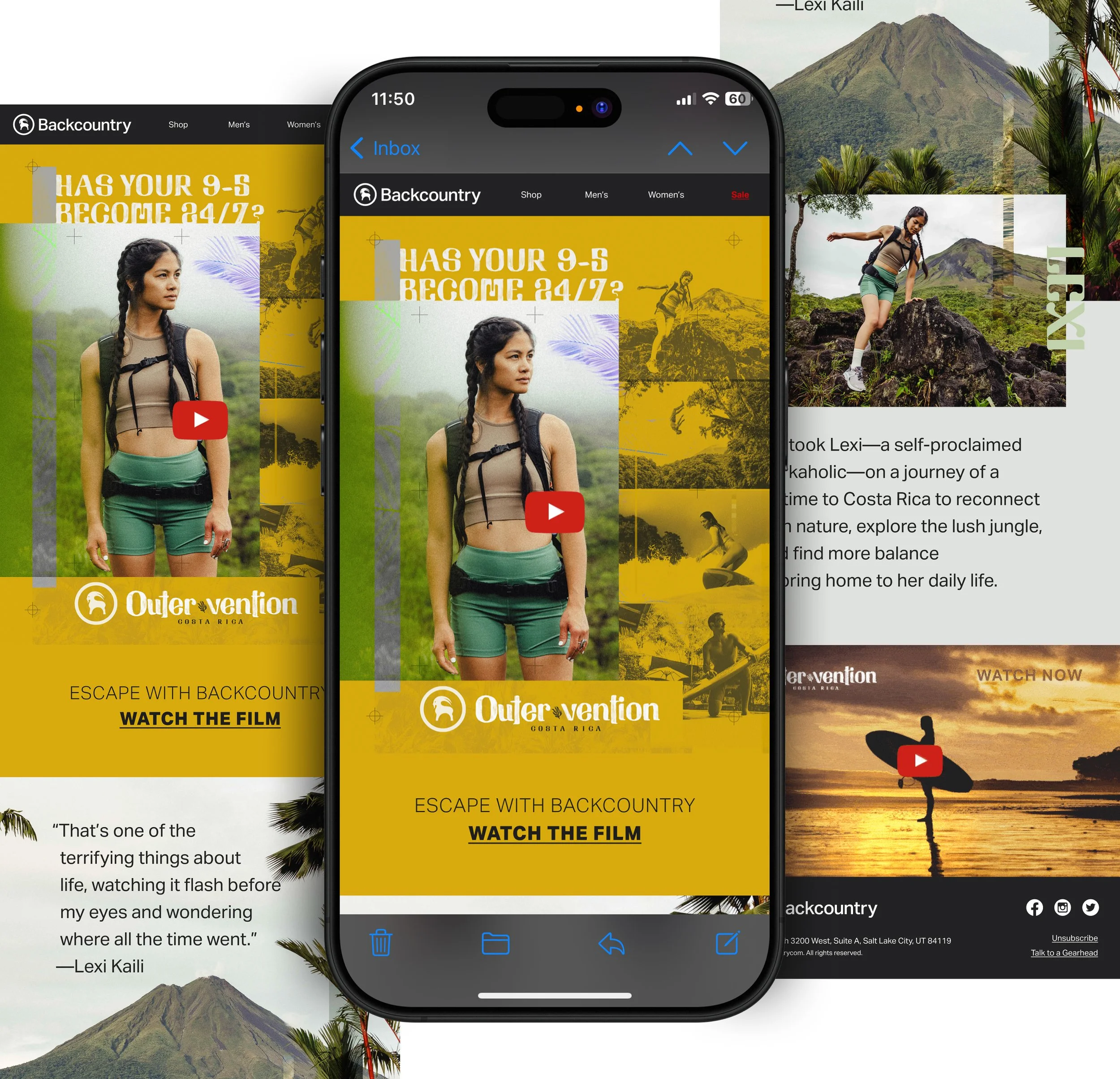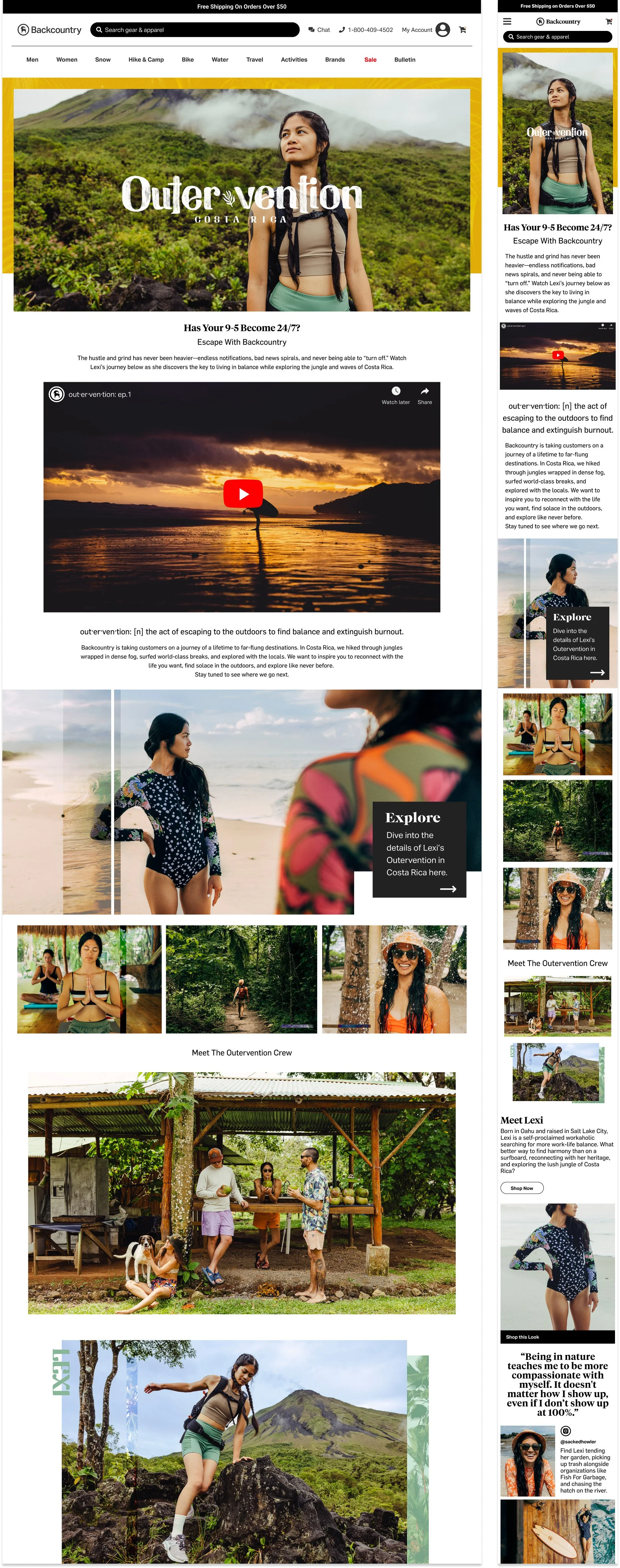 The goal was to capture the energy of the trip and translate it into a cohesive visual story across a curated landing page, email campaign, and social content. Think: surfboards, zip-lines, misty jungle hikes—all the stuff that makes you want to get out there. On the design side, I leaned into a collage-inspired aesthetic that let me layer different textures, moments, and landscapes into single compositions. It was a great way to show the variety of activities while creating a visual rhythm that felt dynamic and immersive. I focused on blending organic photography with bold type, overlapping elements, and subtle grit to reflect the raw, unfiltered vibe of the adventure. The end result was a campaign that felt personal, energetic, and packed with wanderlust—just like the trip itself.